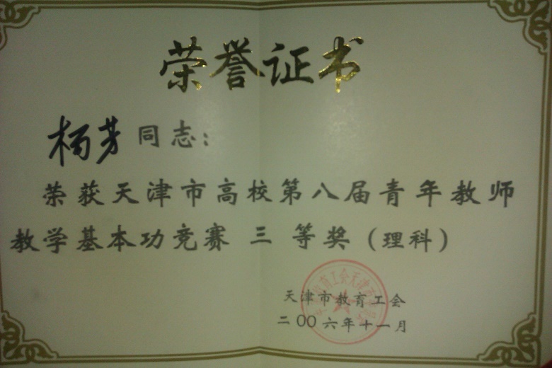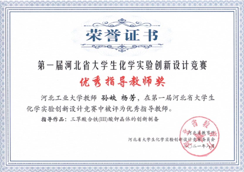 杨芳,女,博士,副教授,硕士生导师,2019.08~2020.07,在美国康奈尔大学做访问学者。科研方面,主要从事聚合物的合成和改性、可再生能源的开发和利用、药物载体的制备及性能研究方面的基础研究工作,先后主持完成了6项省级及以上课题,参与完成了15项课题工作,获国家发明专利5项,发表论文50余篇,被SCI或EI收录40余篇,获得河北省技术发明二等奖和三等奖各1项。教学方面,荣获“天津市高校第八届青年教师教学基本功竞赛”三等奖和“河北工业大学第八届青年教师教学基本功竞赛”一等奖,多次获得河北工业大学年度课堂教学质量优秀奖,发表教学核心期刊3篇,完成校级重点教改课题2项,多次指导学生在省级及以上教学实验竞赛中获得优异成绩。