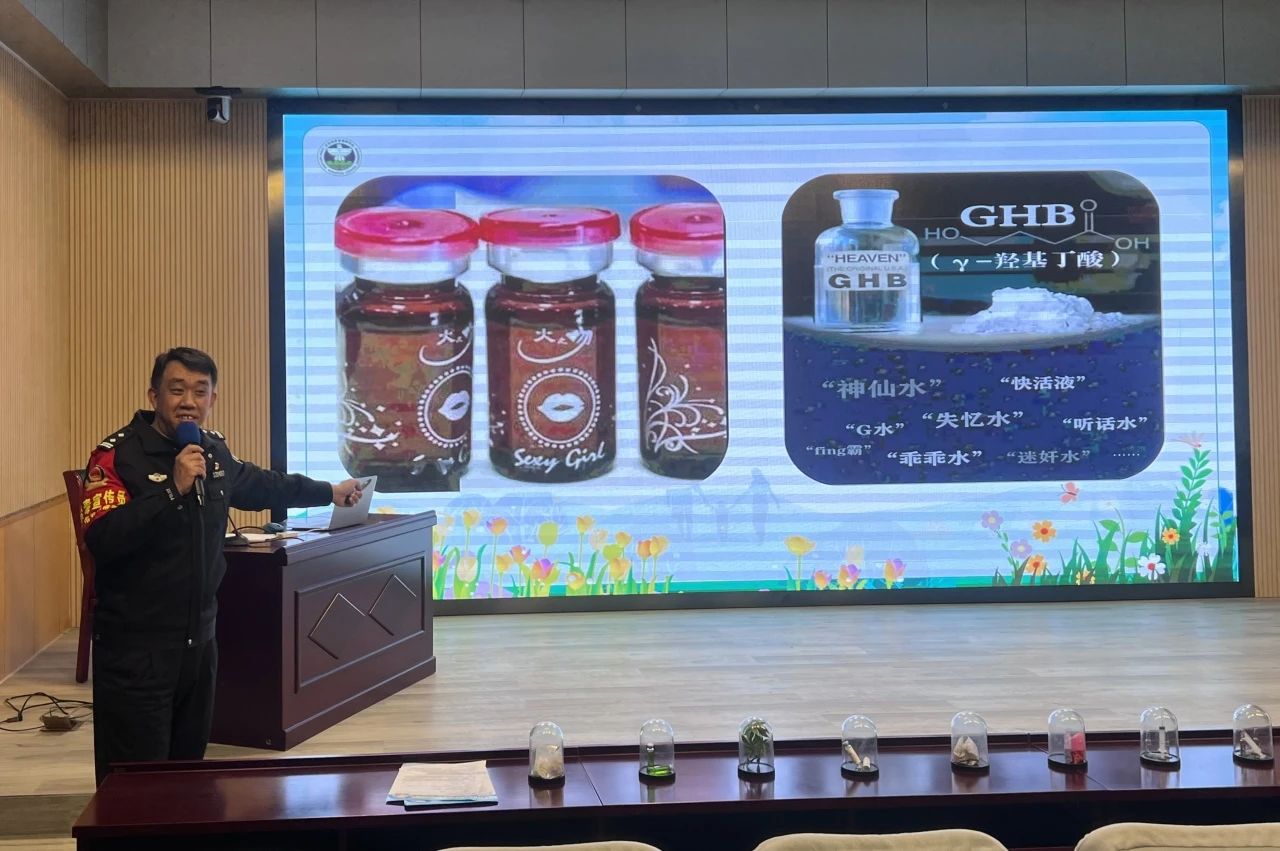 杨志洋警长结合中国虎门销烟和费城毒品泛滥的历史案例,向同学们展示了吸毒的危害,又向同学们介绍了“金三角”、“银三角”、“金新月”、“黑三角”等毒品流通窝点,抵制毒品是每一个公民的责任,它不仅关乎个人的健康和幸福,更关系到社会的稳定与和谐。