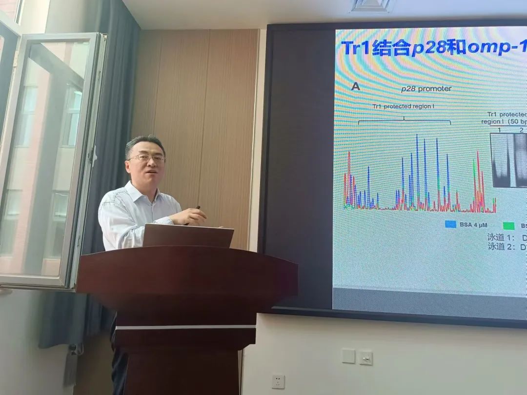 本次沙龙活动中,李敬德副院长首先向特邀嘉宾介绍了河北工业大学威廉官网中国官方网站的发展沿革和教学科研情况。然后,特邀嘉宾程志晖教授作了题为《查菲埃立克体外膜蛋白差异化表达的调控机制》的学术报告,详细介绍了蜱传疾病——人单核细胞埃立克体病的致病机理及发展过程,及查菲埃立克体外膜蛋白差异化表达的动态变化及调控机制相关研究工作。