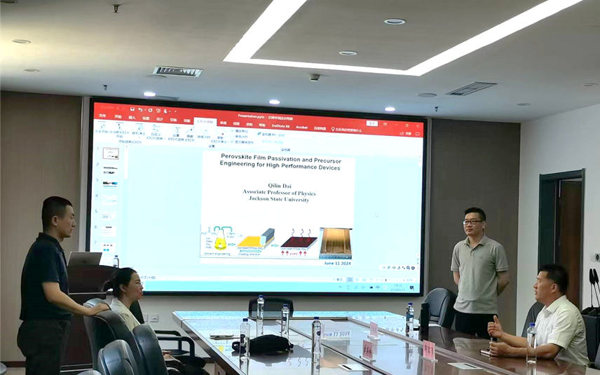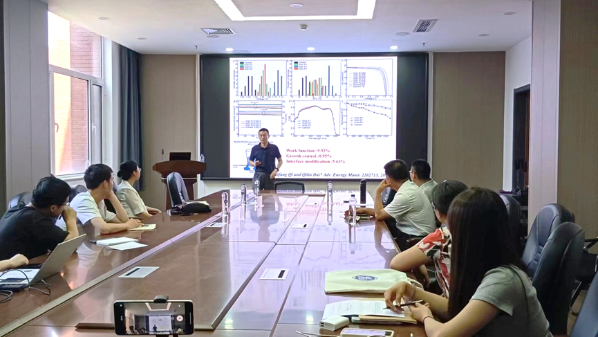讲座中,戴其林教授介绍了钙钛矿薄膜在太阳能电池应用的最新科研进展,详述了聚合物、有机小分子和染料分子等有机材料在改善钙钛矿电池薄膜缺陷方面的关键作用和机理,并以视频形式展示了其团队的研究成果。