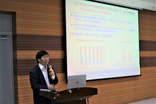 会议首先由特邀嘉宾,清华大学徐盛明教授做题为《退役动力锂离子电池的回收利用研究进展》的学术报告。徐教授以新能源汽车的发展近况、行业瓶颈问题、环境污染和资源浪费等背景为出发点,从行业发展必然性为研发依据,从“退役动力电池回收利用的必要性”、“退役动力电池梯次利用及其研究进展”、“退役锂离子电池材料再生利用研究进展”、“相关领域的国家重点研发计划专项布局”四个部分系统介绍了研究工作,并详细介绍其国家重点研发计划项目的筹备、申报及开展过程中的宝贵经验。