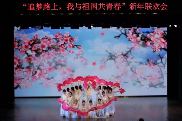 伴随着清新的音乐,婀娜的舞姿,“我与祖国共青春”文艺演出正式开始。本次晚会分为青春之我、青春与共、青春中国三部分,青春之我,昂扬青春朝气。让我们感受到了四射的激情,让场上的气氛瞬间燃爆,动感的音乐中,洋溢着对生活的热爱和未来的向往。青春与共,共享青春年华,是对理想的执着,是对祖国深情的告白。青春中国,歌颂青春盛世,铿锵有力的呐喊抒发热爱祖国的豪情,为我们描绘了大国风采,让我们继续扬帆,起航远方。回首2019,展望2020。是新的起点,也是新的征程。