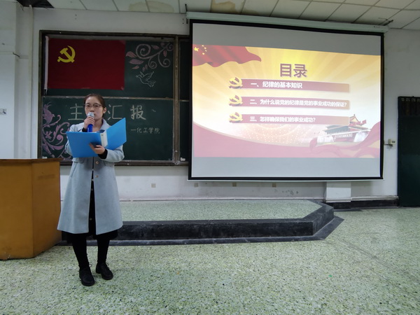 主题汇报会在庄严的国歌声中拉开帷幕。主持人宣布比赛规则及评分细则后,各支部学员正式开始汇报。8名学员声情并茂地展示了自己的学习成果,他们围绕着文化自信、理想信念、党的纪律等主题,对自己在党校培训中所学习的内容进行了讲解和总结,向在场的学员们分享了自己在培训过程中的心得与体会。他们利用丰富多彩的形式,以自己饱含真挚的语言,向在场的学员们传达了青年党员肩负着的责任和使命:作为新时代的青年党员,我们要始终不忘初心,积极进取、以身作则,严明党的纪律,坚定党的路线方针政策,树立崇高远大的理想信念,牢记伟大光荣的历史使命,传承发扬中华民族优秀传统文化,积极学习社会主义先进文化,保持党的先进性,坚定不移地为实现中华民族伟大复兴的中国梦而努力奋斗。