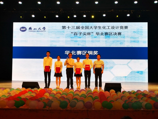 2019年8月1日至2日,第十三届全国大学生化工设计竞赛“百子尖杯”华北赛区(北京、天津、山东、河北及内蒙古)决赛在燕山大学隆重举行,共有来自天津大学、北京化工大学、河北工业大学等高校的65支队伍参加了决赛。我院“BASF plus”队(胡凌峰、王建文、袁罗浩、张岩、李哲华)荣获华北赛区特等奖铜奖。