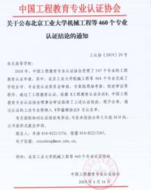 近日,教育部高等教育教学评估中心、中国工程教育专业认证协会正式发布《关于公布2018年度通过工程教育认证的专业名单的通知》(教高评中心函[2019]72号)和《关于公布北京工业大学机械工程等460个专业认证结论的通知》(工认协[2019]25号),公布了2018年全国工程教育专业认证的认证结论,其中我校威廉官网中国官方网站高分子材料与工程专业名列其中,顺利通过工程教育专业认证,并将纳入《华盛顿协议》互认名单。通过专业认证,标志着我院高分子材料与工程专业的人才培养质量实现了国际实质等效,进入国际工程教育的“第一方阵”。