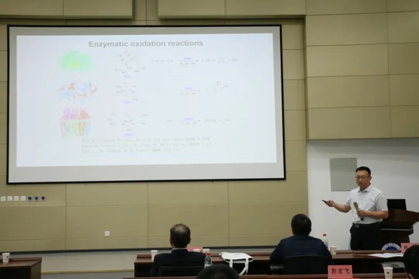 聘任仪式后,生物化工发展前沿论坛拉开帷幕。来自韩国梨花女子大学Wonwoo Nam院士、北京大学张俊龙教授、清华大学章名田教授、天津理工大学郭颂教授、济南大学王斌教授及河北工业大学刘运亭教授和董贝贝博士围绕生物化工领域的前沿问题展开深入探讨。专家们分享了最新研究成果与技术进展,涵盖生物催化、生物制药工艺优化等多个前沿热点话题,既有对基础科学问题的深度剖析,也有对产业应用前景的展望,为与会者呈现了生物化工领域的全景式学术盛宴。